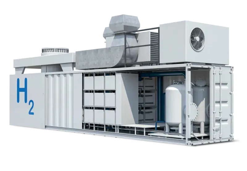 电解槽可将多余的可再生能源转化为氢气,用于储能、燃料供应,平衡电网,助力绿色工业发展。