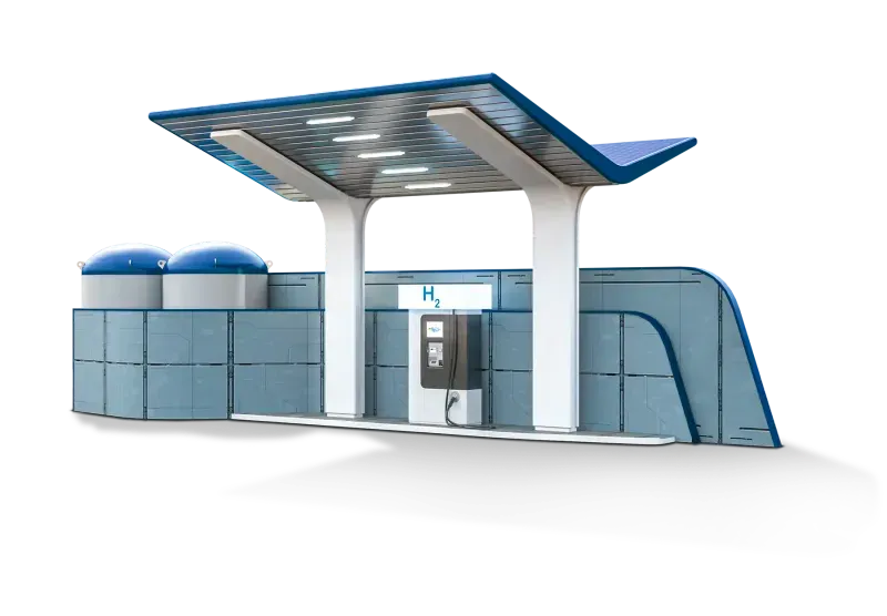 氢燃料存储器采用级联压力平衡工艺,冷却装置调节氢气温度以确保符合燃料协议标准和优秀加氢率。加氢机将燃料输送到车辆油箱,压力最高可达700 bar,传感器和安全阀保障整个过程的安全。