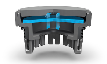 该方案可靠且易于装配,可补偿偏心,降低安装力,具有高抗振性、声学和机械解耦特性,以及专利设计的密封筋几何形状。